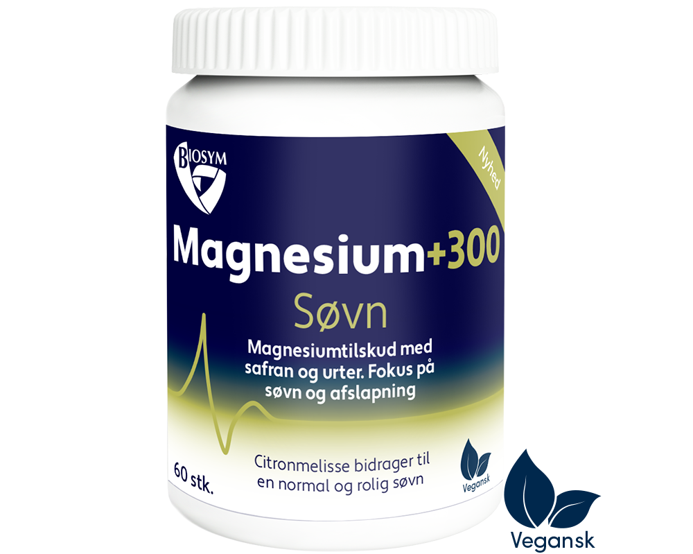 Magnesium+300 Søvn er nyeste magnesiumtilskud med magnesiumbisglycinat, citronmelisse, kamille, safran, L-tryptofan og vitamin B6.